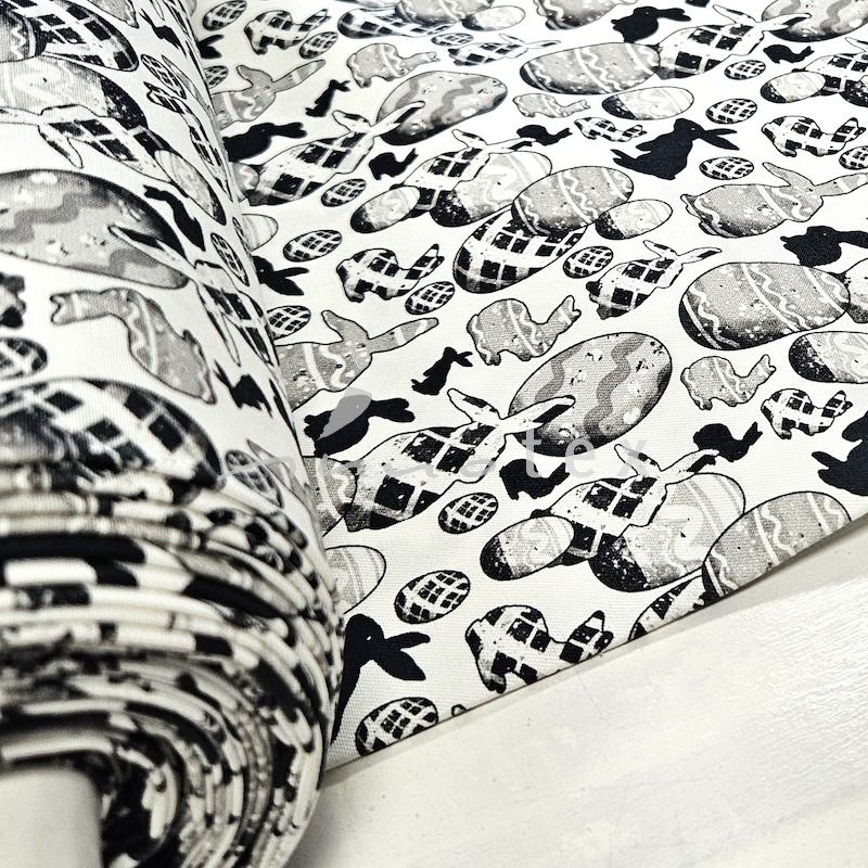 Der Webebstoff mit Osterdessin eignet sich wunderbar für Tischwäsche, Deckchen, Läufer, Osterbeutelchen, Osterdekoration.