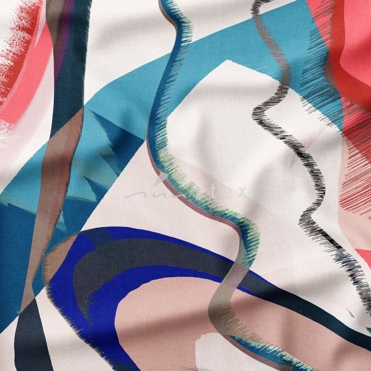 Viskose, Jersey, Stoffe, grafisch, blau, leuchtend