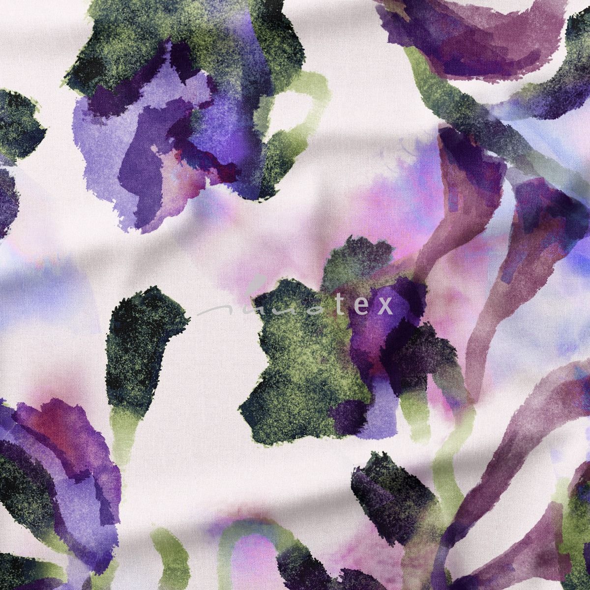 Viskose, Jersey, Stoffe, Grafisch, Blüten, Blätter, Floral, violette